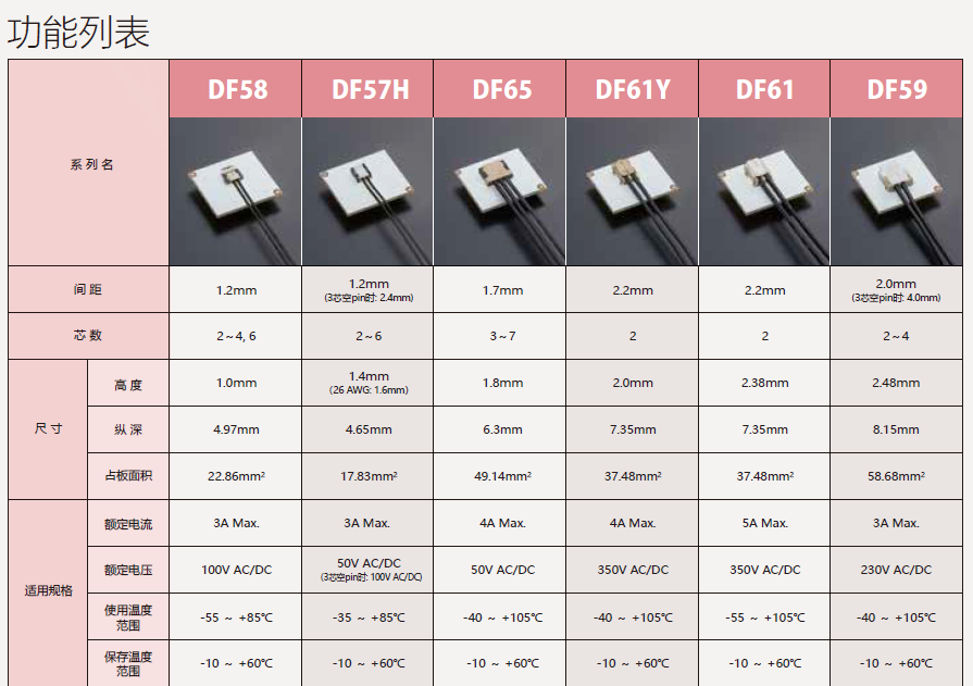 該連接器實(shí)現(xiàn)了大電流、省空間,高度為2.0mm。對(duì)比DF61,有著更為低薄的構(gòu)造。小型緊湊,同時(shí)支持大電流。